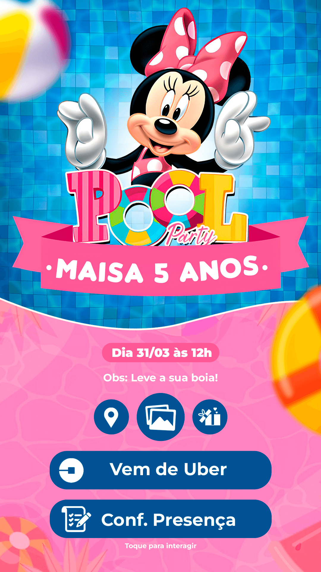 Um convite interativo pode incluir uma galeria de fotos, dicas de presentes, localização com integração ao Google Maps, opção de chamar um Uber e confirmação de presença pelo WhatsApp ou através de uma lista automática no Google Planilhas. Tudo para tornar a experiência dos seus convidados o mais prática e envolvente possível!