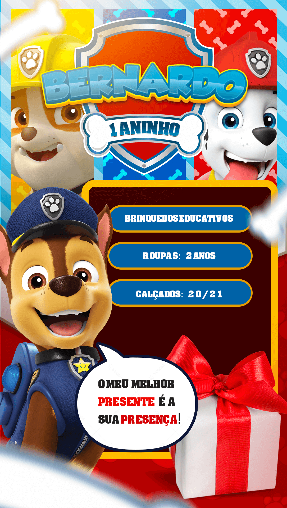 Para começar, precisamos do tema da festa, os detalhes do evento (como data, hora e local), uma lista de convidados (se deseja integração com o WhatsApp ou Google Planilhas), e qualquer foto ou texto que você gostaria de incluir no convite.